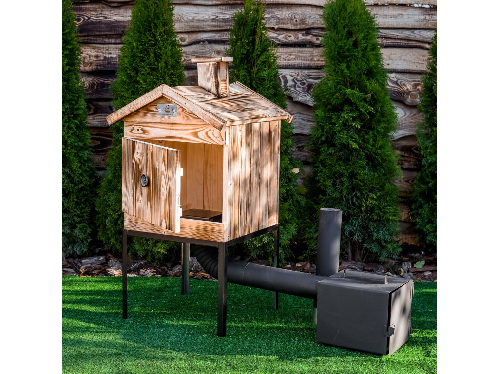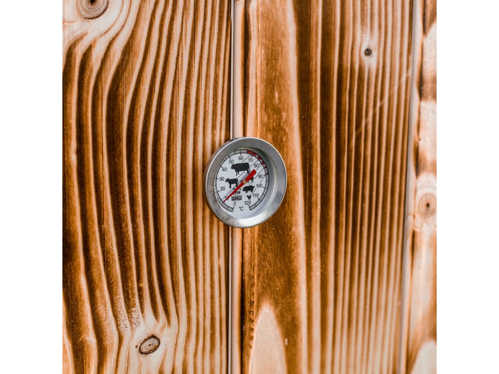 Jednoduchost je jedno z našich hlavních hesel, kterými se řídíme. Odnímatelná stříška udírny umožňuje snadný přístup do udírny a kontrolu uzených potravin. Pevná dřevěná konstrukce disponuje dostatkem prostoru pro zavěšení potravin na háčcích či provázcích. Teploměr který je součástí udírny nám pomáhá hlídat správnou teplotu v udírně. Teplota se reguluje pomocí dvířek topeniště. Otevřením či zavřením dvířek regulujeme přívod kyslíku a hlídáme správné hoření během uzení. Komínkem v stříšce je odváděn přebytečný kouř z uzení komory. Udírna je ideální pro domácí uzení masa, ryb, drůbeže, sýrů a mnoho dalších dobrot. Všichni víme, že nám nejvíce chutná domácí výrobek, kde můžeme spolehnout na jeho kvalitu.