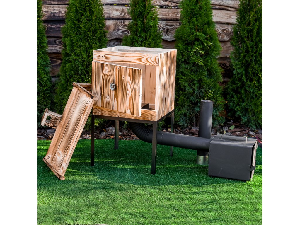 Udírna je vyrobena z kvalitního vysušeného dřeva. Pro výrobu používáme skandinávský smrk o minimální šířce 20 mm. Dřevo je kvalitně opracované a při správném zacházení udírna disponuje dlouhou životností. Ohniska a kovový podstavec je vyráběn z hrubé oceli (minimálně 2 mm). Ohniska je ošetřeno žáruvzdorným nátěrem a kovový podstavec antikorozním nátěrem. Nabízíme výbornou kvalitu udírny a přijatelná cena kompletní udírny pro každého, kdo se chce vrhnout do světa domácího uzení.