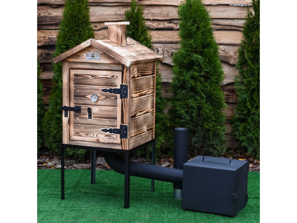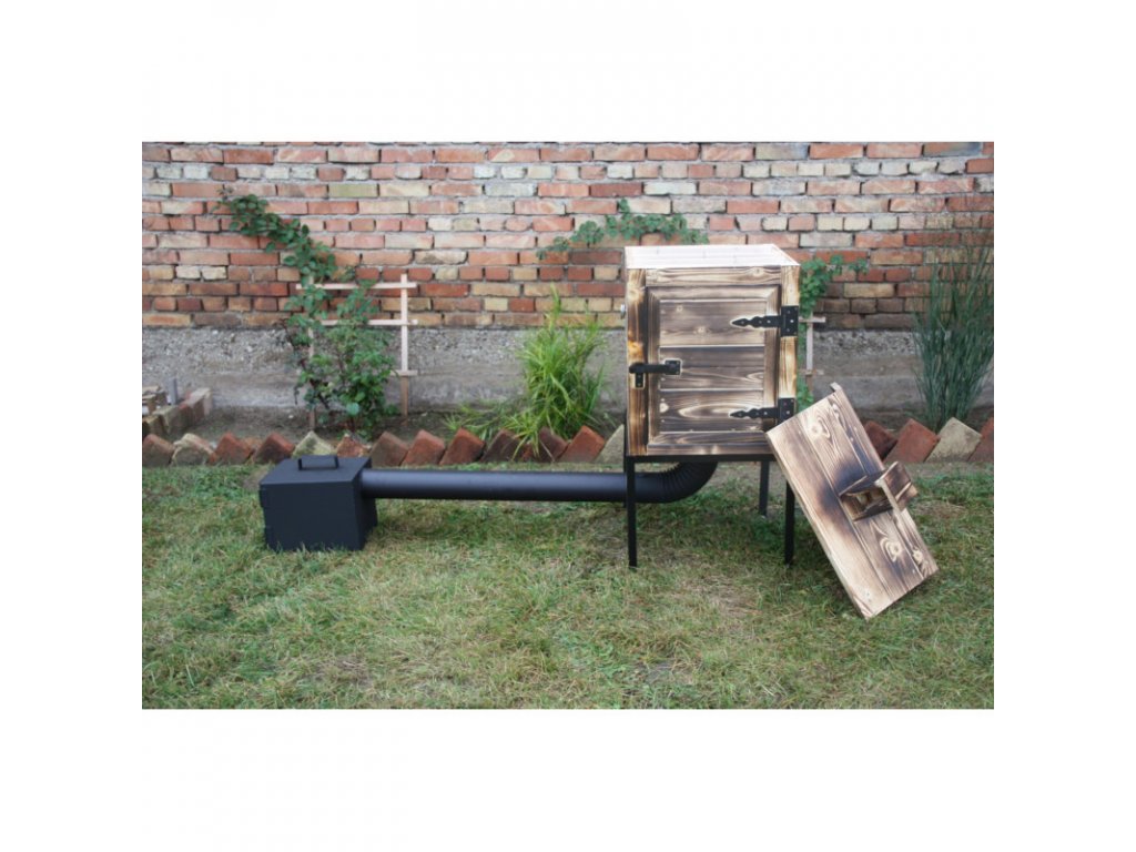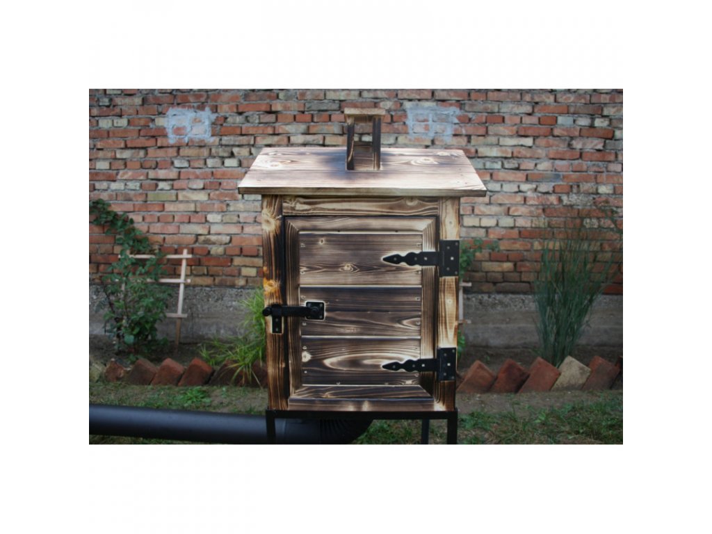 Jednoduchost je jedno z našich hlavních hesel, kterými se řídíme. Odnímatelná stříška udírny umožňuje snadný přístup do udírny a kontrolu uzených potravin. Pevná dřevěná konstrukce disponuje dostatkem prostoru pro zavěšení potravin na háčcích či provázcích. Teploměr který je součástí udírny nám pomáhá hlídat správnou teplotu v udírně. Teplota se reguluje pomocí dvířek topeniště. Otevřením či zavřením dvířek regulujeme přívod kyslíku a hlídáme správné hoření během uzení. Komínkem v stříšce je odváděn přebytečný kouř z uzení komory. Udírna je ideální pro domácí uzení masa, ryb, drůbeže, sýrů a mnoho dalších dobrot. Všichni víme, že nám nejvíce chutná domácí výrobek, kde můžeme spolehnout na jeho kvalitu.