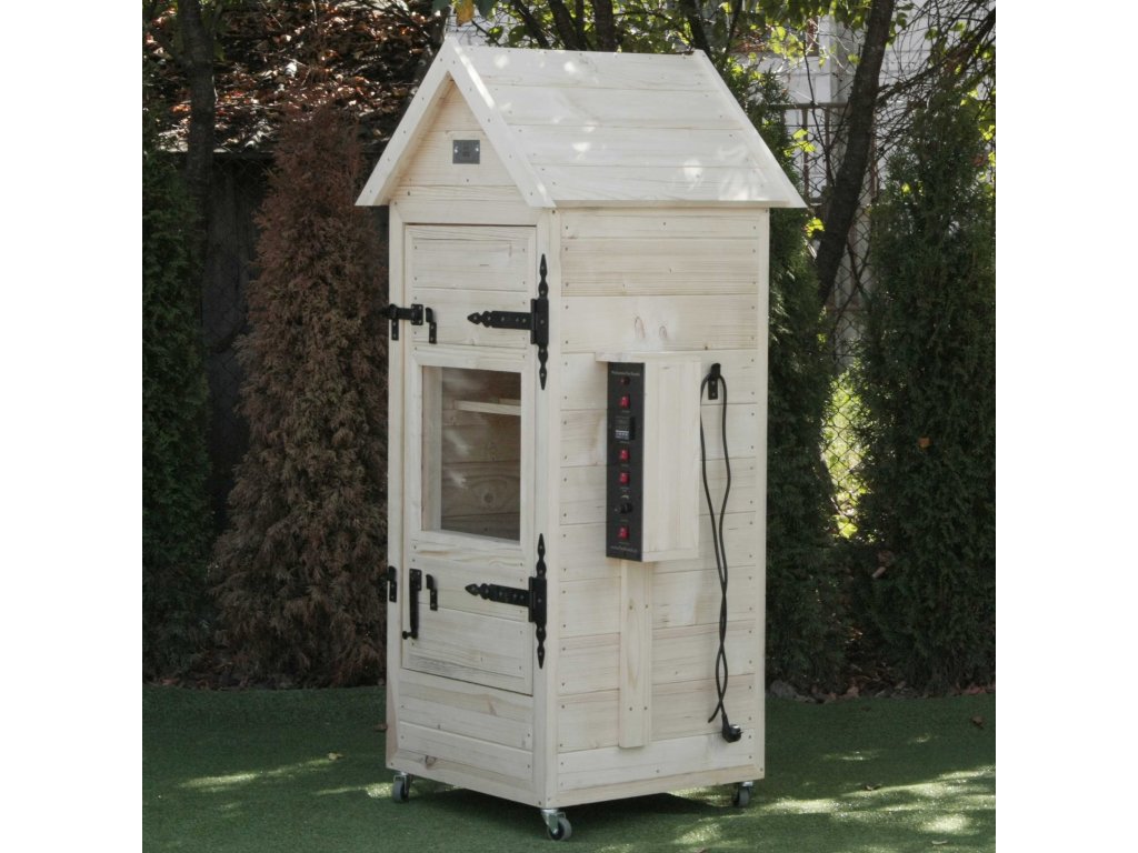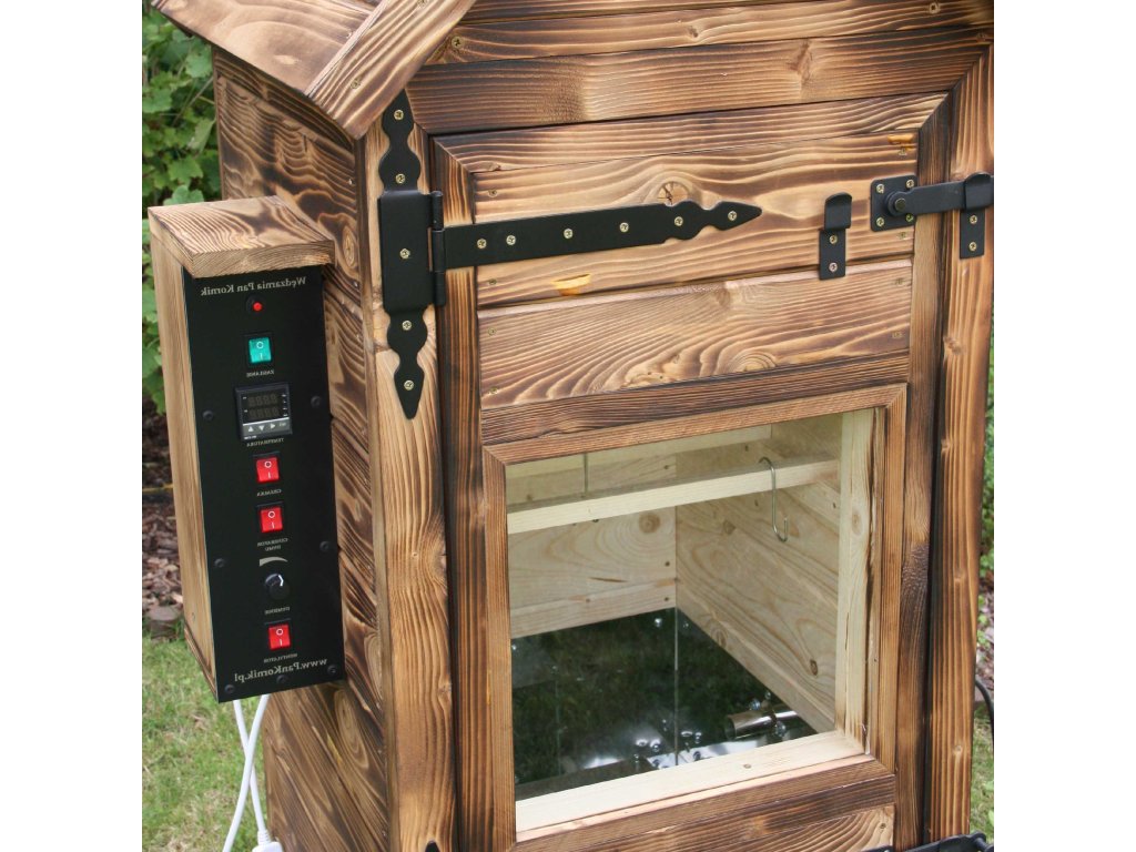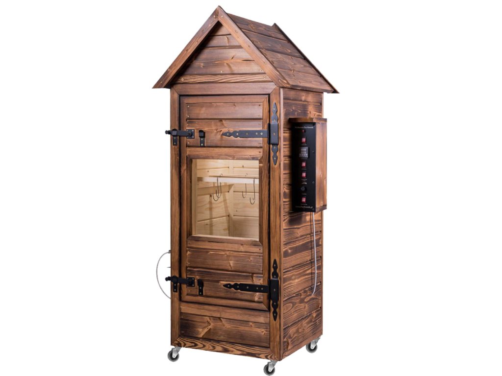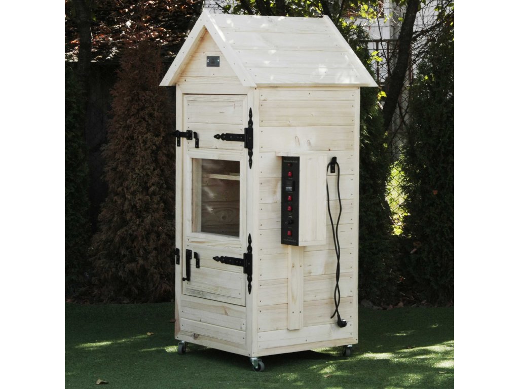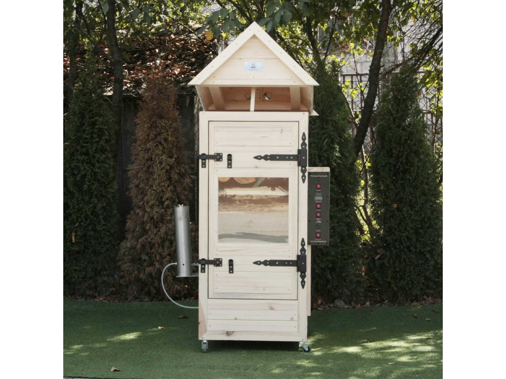 Elektrická udírna +impregnace+opalovaná s okénkem, s osvětlením Ideální volba pro lidi, kteří si cení svého času, peněz a pohodlí. Navrhujeme dřevěnou elektrickou udírnu, ve které je proces „uzení“ řízen automaticky od začátku do konce. Použitím kouře z generátoru kouře a tepla z ohřívače získáme vždy požadovaný produkt. Automatické řízení zajišťuje opakovatelnost v našem uzeném mase.