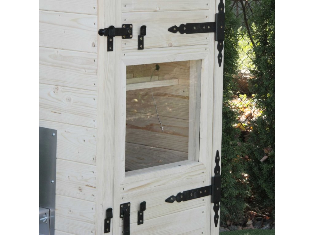 Zahradní Dřevěná elektrická udírna 220L s okénkem, s osvětlením